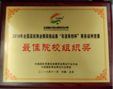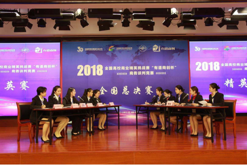 2018年11月24日至25日,“有道商创杯”全国高校商业精英挑战赛商务谈判竞赛总决赛在北京正式开赛。本次大赛由教育部高等学校经济与贸易类专业教学指导委员会、中国国际贸易促进委员会商业行业分会及中国国际商会商业行业商会联合举办。本届竞赛总共有来自北京、天津、重庆等20多个省、自治区、直辖市,近50所高校500余名师生参加预选赛。