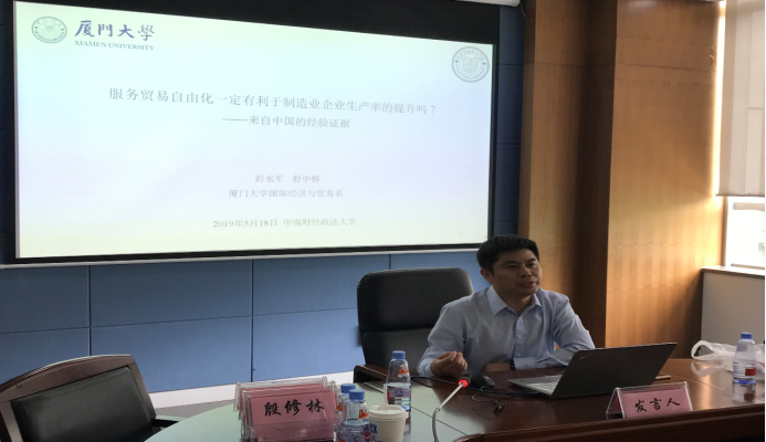 厦门大学彭水军教授汇报的论文题目是《服务贸易自由化一定有利于制造业企业生产率的提升吗?》。彭教授以全球制造业服务化的大环境为切入点,利用中国2011-2013的企业数据进行研究,他发现服务贸易自由化显著促进了我国出口强度较大的制造业企业生产率的提高,显著抑制了非出口企业生产率的提升;国内市场化能放大服务贸易自由化对出口企业生产率的正向效果,而缓冲服务贸易自由化对非出口企业的负向冲击。根据以上结论,彭教授认为服务业的市场化开放要认识到服务贸易自由化对我国制造业企业生产率的积极作用和不利影响,应当着力推进和制造业生产出口相关的服务业对外开放,将服务业对外开放的范围进一步扩大。