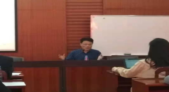讲课结束以后,廖涵教授对杨柳青青老师进行了点评。廖老师表示,首先杨柳青青老师今天表现很不错,情景引入好,但是在角色切入方面还需改善;其分别从形象设计、教案设计及效果设计等多角度从比赛的角度提出很专业的建议!