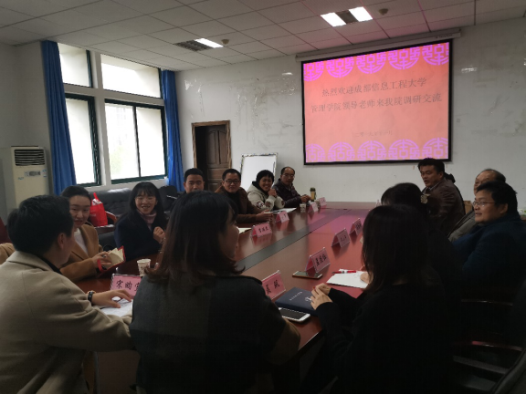 本次座谈会由经济学院党委副书记詹万明主持。首先,院党委书记陈勤舫简要介绍了我校的发展历史,我院的学科建设、师资队伍以及党建和思想政治工作。接着,宋昀宜老师详细介绍了我院的党建工作,陈立兵老师讲述了自己作为“双带头人”党支部书记的心得体会,周琼老师也以辅导员的视角全面介绍了我院的学生工作。经过几位老师的介绍,成都信息工程大学管理学院的领导和老师对我院有了更加深入的了解,也对我院上述工作表示赞许。同时,李璘来副书记简要介绍了成都信息工程大学的校史和管理学院的基本情况,就学院工作中的团学干部、学生表彰等问题进一步交流探讨。会后,双方领导和老师合影留念。