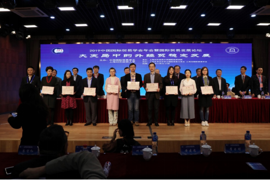2019年11月16日至11月17日,“中国国际贸易学会2019年年会”在上海对外经贸大学召开,原外经贸部副部长沈觉人等人为第33届 “中国外经贸发展与改革”征文活动的获奖者进行颁奖,其中我院杨波教授及研究生柯佳明参加会议,他们合作撰写的论文《七十年中国对外投资历史回顾与展望》获得中国国际贸易学会三等奖。