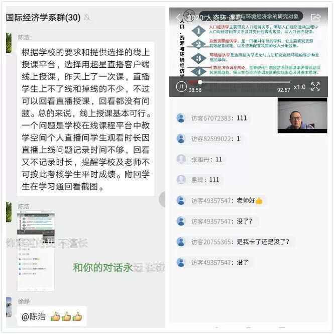 共战“疫”,不停学。疫情尚未结束,全体经院教师将继续全力以赴站好教学岗位,守好课堂阵地,做实事求是的师者典范,做维护稳定的中流砥柱,做信息时代的科技能手,做心怀仁爱的人生导师,坚定必胜信心,践行育人初心,共同前进,迎接胜利!