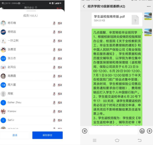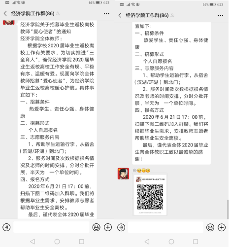 动员全院教工,摸排精准细化。经济学院在教师中招募返校工作志愿者,充实返校工作人员,全体院领导、辅导员和教师志愿者齐上阵,帮助毕业生整理档案、毕业论文材料,自备车辆协助毕业生运送行李。学院充分尊重学生返校意愿,按班级、宿舍传达返校要求,逐一联系每一名学生,落实错峰返校,精准掌握毕业生返校动态,营造返校氛围,开展人文关怀。