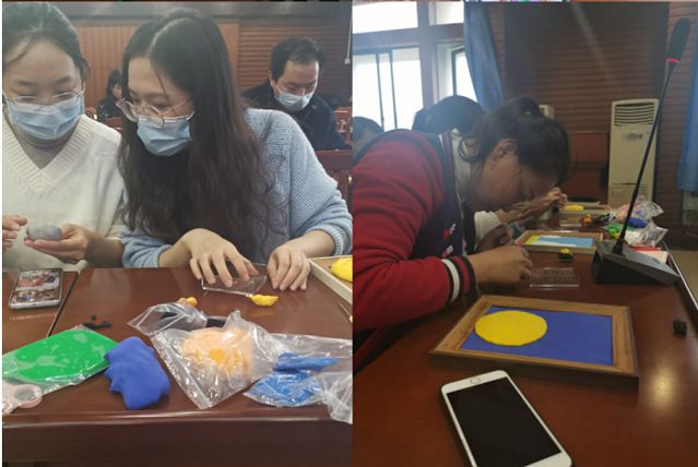 为了让广大女职工充分享受活动的乐趣,工会特提前为大家精心准备了丰富的材料,并邀请专业的手工师进行现场指导。活动现场气氛十分热闹,也吸引了不少男教工参加,大家说说笑笑、发挥想象,在老师的协助下,每个人都亲自动手制作了一个精美可爱的粘土相框。