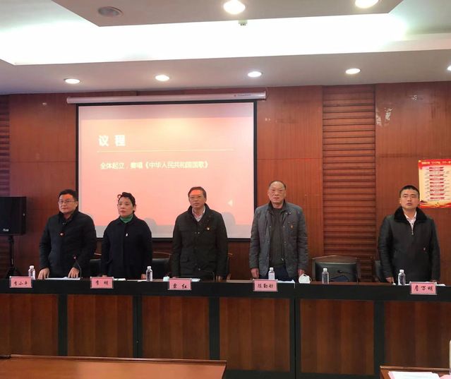 在雄壮的乐曲声中,大会正式开始。全场起立,奏唱中华人民共和国国歌。