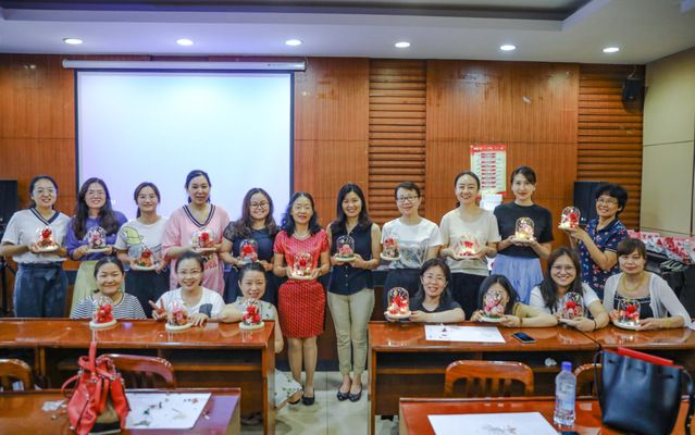 永生花又名“永不凋零的鲜花”,它是使用玫瑰、康乃馨等鲜花,经过脱水、烘干、染色等一系列程序加工而成的,以至于它既保存了鲜花的色泽,又能够达到长久保存的功能。永生花彰显了巾帼之美,也寓意祝愿中国共产党永葆青春、永葆活力。在花艺老师的指导下,女教师们将细心、用心、尽心的工作风格发挥得淋漓尽致,从聆听讲解、设计配色、选取材料到实际制作,每一环节都彰显了大家的妙手匠心,每一枝、每一朵花都体现了她们对美的热爱与向往。每位老师都把对党和祖国的热爱凝聚在了手中的永生花里,纷纷把自己心中最美好的样子呈现为作品,在灵感与创意的浇灌下,精致的永生花和愉悦的笑容竞相绽放,焕发出女性的无限魅力与风采。
