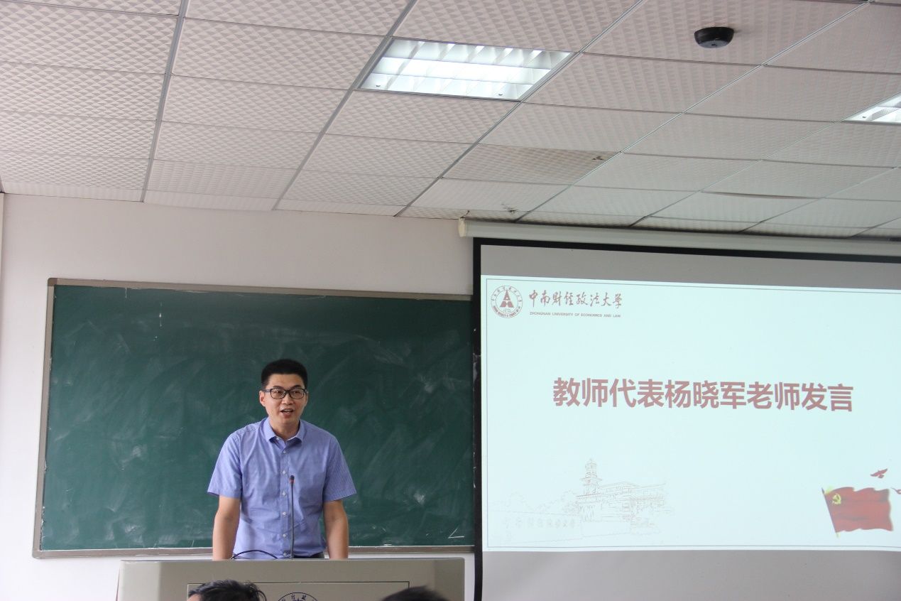 教师代表杨晓军副教授代表所有导师为新生分享学习和研究的经验心得。他从自身在中南大深造到任教的经历出发,希望同学们能够自律,在学习生活中严格要求自己,在科研中跟随导师不断提高专业能力。在发言最后,杨晓军副教授再次对2021级研究生新生表示了欢迎,预祝新同学们在研究生学业中不断进步。