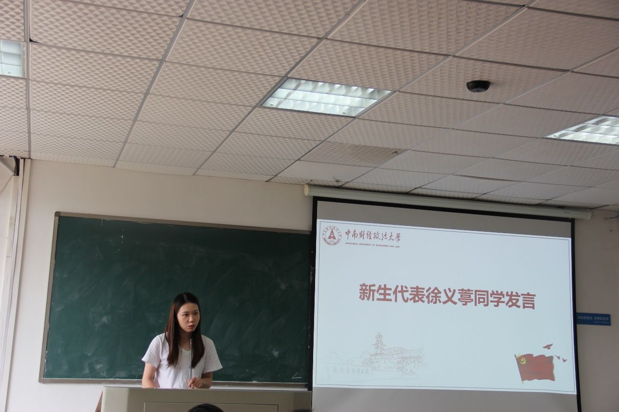 新生代表徐义葶分享了自己的支教经历,她呼吁2021级新生做合格的新时代青年,毫不犹豫承担起自己应尽的社会责任,利用好研究生生活这块磨刀石,擦亮自己的剑,明确自己的目标,在认真学习理论知识的基础上,积极寻求创新和进步。