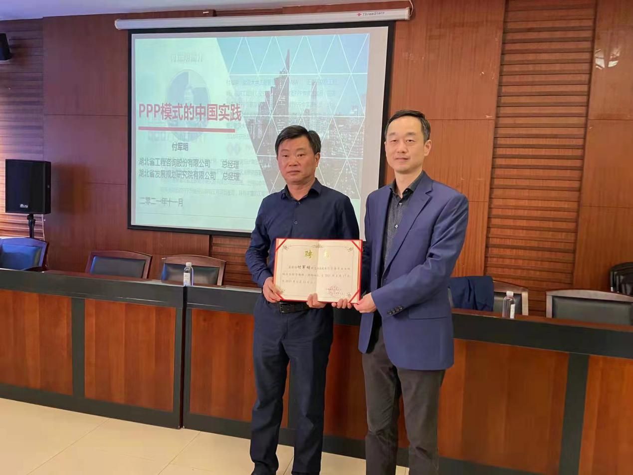 2021年11月3日15:00,经济学院特邀湖北省工程咨询股份有限公司总经理、湖北省发展规划研究院有限公司总经理付军明先生,为同学们作了一场题为“政府与社会资本合作(ppp)模式在中国的实践与发展”的讲座,让同学们受益匪浅。同时,学院聘请付军明先生作为国际商务专业校外硕士生导师,在社会实践方面对国际商务学子提供指导和帮助。