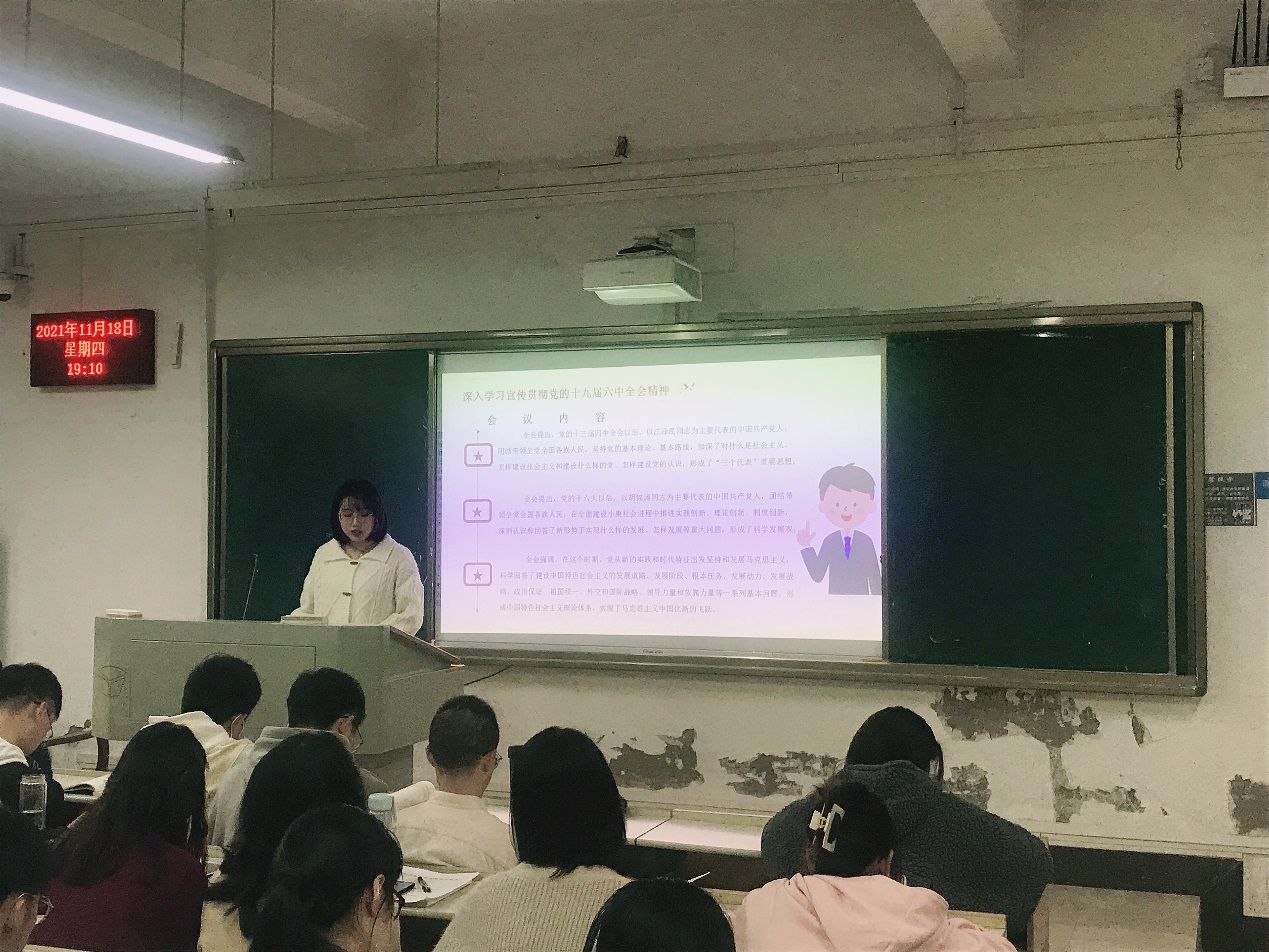 2021年11月18日晚,经济学院2021研究生党支部召开了11月份支部主题党日活动,支委王雨濛主持了本次活动。
