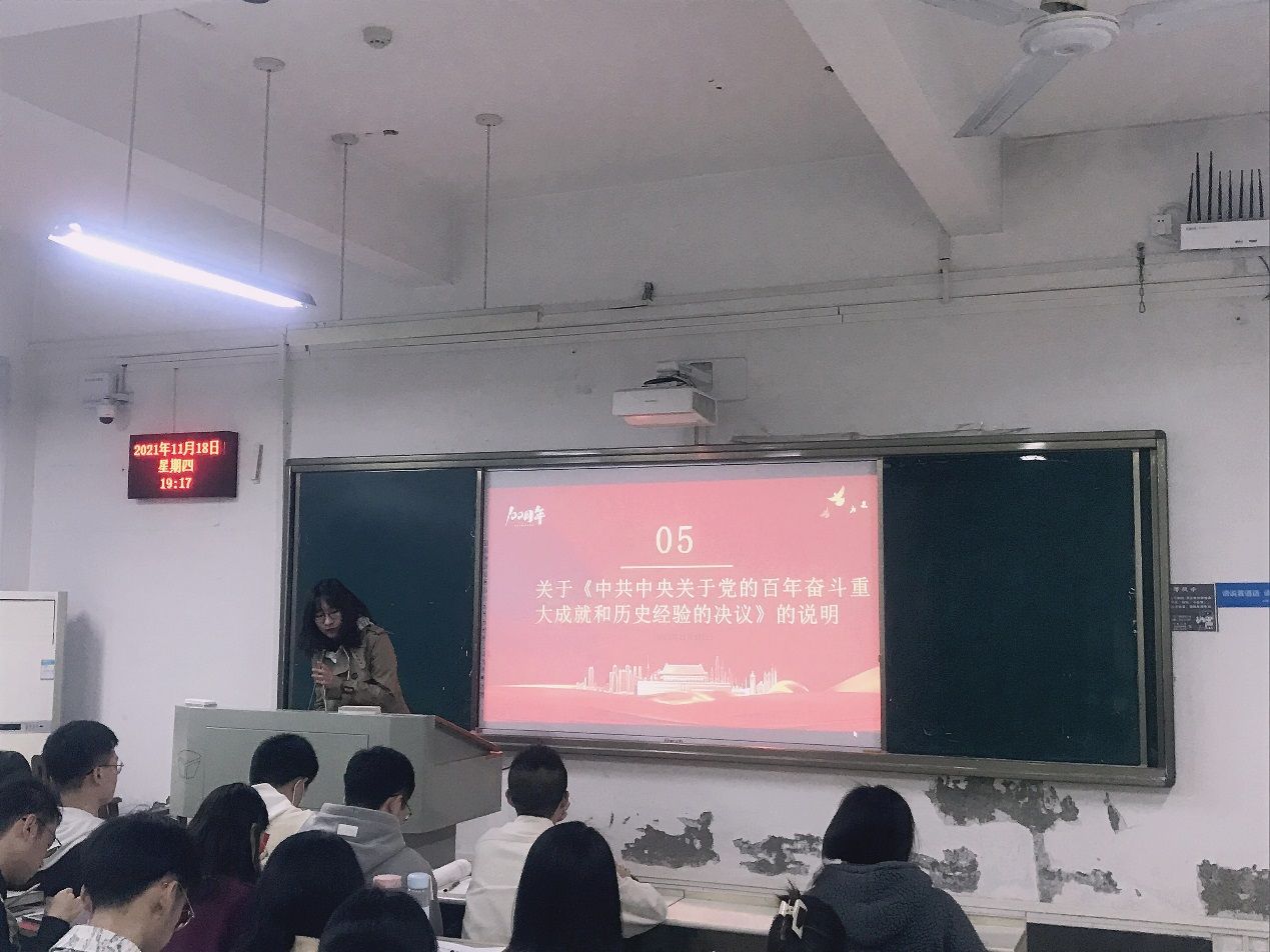 然后,全体党员在张丹的带领下,学习了中国共产党第十九届中央委员会第六次全体会议公报和《中共中央关于党的百年奋斗重大成就和历史经验的决议》。并且在学习之后进行了讨论分享,党员同志纷纷对学习内容发表了自己的看法,大家纷纷对现在来之不易的美好生活表示珍惜,并且在将来也会一直为了党的伟大事业而不懈奋斗。