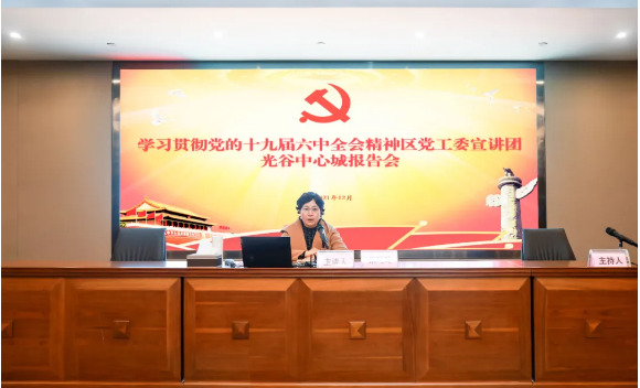 12月16日,学习贯彻党的十九届六中全会精神东湖高新区党工委宣讲团光谷中心城报告会在光谷科技大厦举行。湖北省委、武汉市委宣讲团专家成员、米兰电竞·(中国区)经济学院朱巧玲教授作宣讲报告。