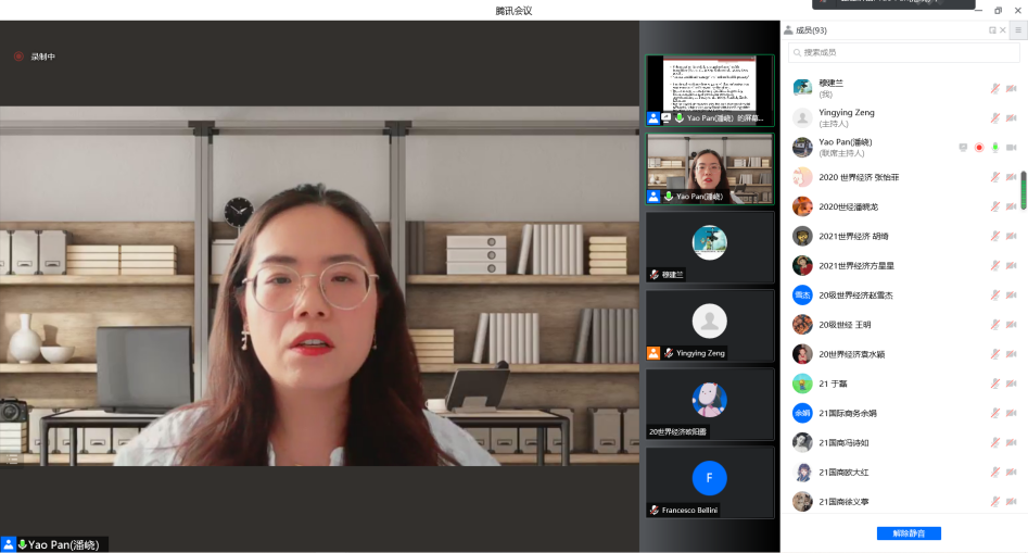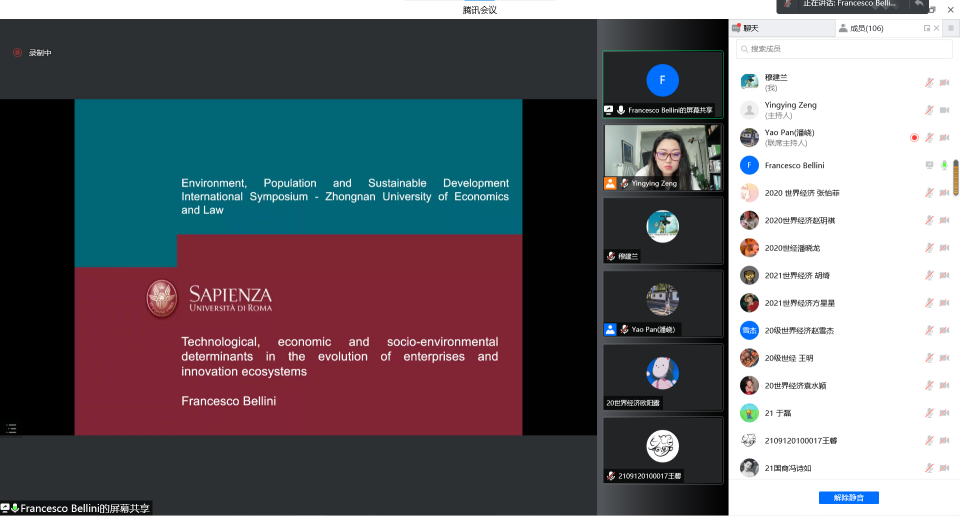2022年6月23日16:00-18:30,我院与意大利罗马第一大学联合举办的“环境、人口和可持续发展国际学术研讨会”成功举办。本次研讨会我们有幸邀请到意大利罗马第一大学经济学院Fabrizio D'Ascenzo教授、Francesco Bellini博士 、Marco Ruggeri博士;海南大学Atif Jahanger博士;南昌大学经济管理学院封亦代博士以及我院杨波教授、潘峣老师。本次会议采取线上形式开展,并由我院院长助理曾盈盈副教授主持。