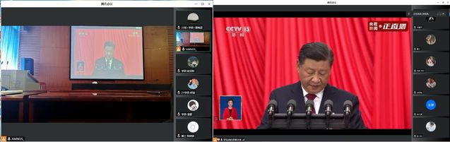 10月16日上午,中国共产党第二十次全国代表大会隆重开幕。经济学院党委委员、师生代表在文泉南206会议室集中收看,认真聆听了习近平同志代表第十九届中央委员会向大会所作的报告。同时经济学院采取线上、线下等形式开设本科生、研究生、教职工分会场,全院上下精神振奋,畅谈感想,热议党的二十大开幕。