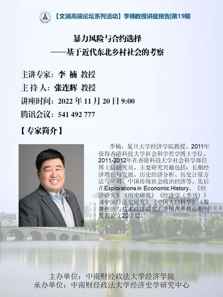 【文澜高端论坛系列活动】李楠教授讲座预告|第19期