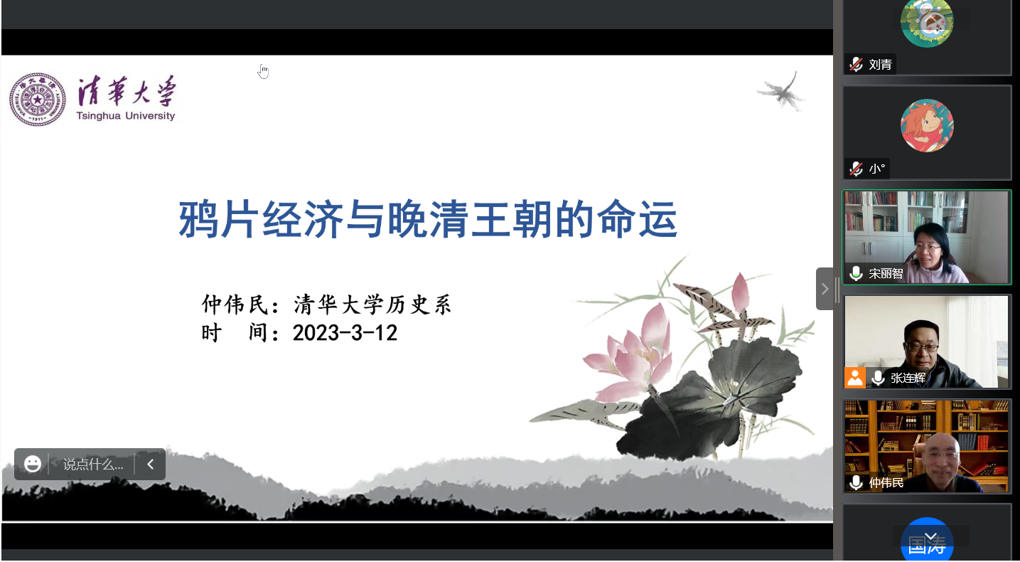 (通讯员 刘青)3月14日上午,清华大学仲伟民教授应我院邀请,做了一场题为“鸦片经济与晚清王朝的命运”的线上讲座。讲座由经济学院副院长宋丽智教授主持。