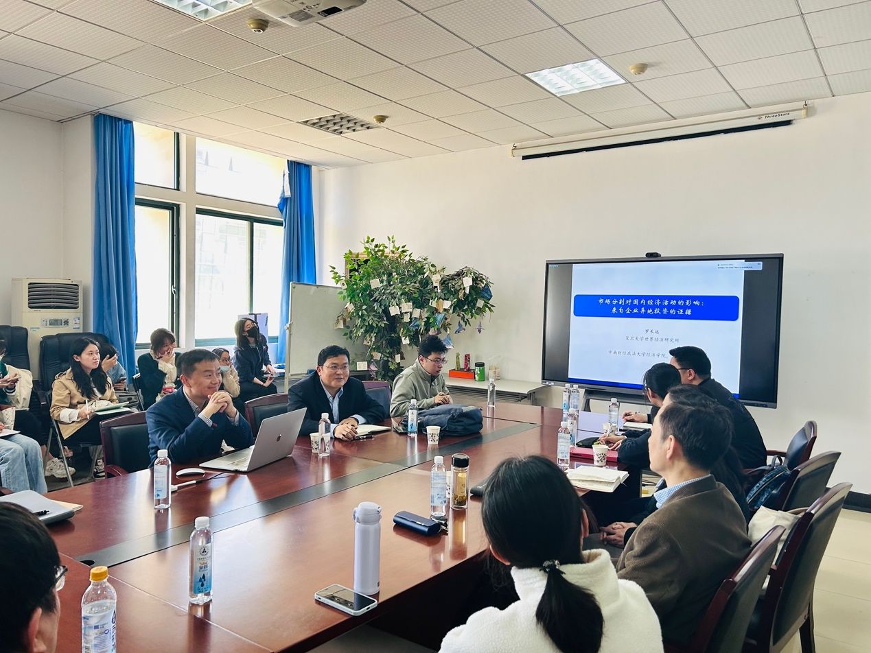 会议伊始,主持人李小平院长介绍了本期讲座的主讲人罗长远教授的科研经历及学术成就,并对罗教授的到来表示热烈欢迎。罗长远教授以市场分割为切入点,借助一价定律,量化分析各省份市场分割程度,进而得到个省份营商环境的具体情况。随后,罗长远教授指出市场分割越严重,该省份营商环境就会越差,越容易抑制异地企业前来投资,进而影响国内供应链的垂直化发展,阻碍国内各省份构建一体化的供应链网络。进一步地,罗长远教授分析了市场一体化与供应链构建之间的关系,并指出市场一体化程度越高,本土企业与异地企业共同构建供应链的可能性越高,而企业之间的地理距离则会限制构建供应链的可能性。
