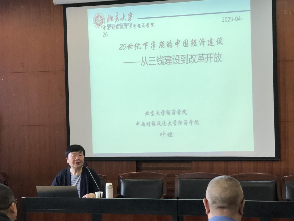 2023年4月26日上午,由叶坦教授主讲的第26期【文澜高端论坛系列活动】第二场在文泉楼南206会议室顺利进行,此场讲座的主题为“20世纪下半期的中国经济建设——从三线建设到改革开放”,叶坦教授从“三线人看三线建设——新中国经济变迁中的一段历史”和“亲历改革开放40年——理论阐释与实践经历”两个方面出发,详细介绍了20世纪下半期经济建设的主要内容。参加此次讲座的专家有:我校经济学院副院长宋丽智教授、经济学院朱华雄教授、常明明教授、瞿商教授、杨祖义教授、张连辉副教授、陈国涛老师、何国卿老师等以及我校和武汉大学经济思想史、经济史等相关专业的硕博研究生共30余人。