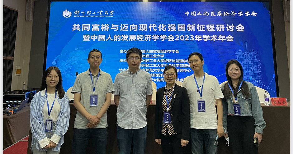 2023年5月26-28日,高红贵教授、郭厦副教授一行参加了由中国人的发展经济学学会和郑州轻工业大学经济与管理学院主办的“共同富裕与迈向现代化新征程研讨会暨中国人的发展经济学学会2023年学术年会”,本次学术研讨会在河南郑州召开。来自南京大学、南京师范大学、米兰电竞·(中国区)、西南财经大学、福建师范大学、吉林大学、韩国全南大学、日本一桥大学、美国宾州州立东斯特拉斯堡大学等40多所高校、科研院所的50多名专家学者参加了此次会议。郑州轻工业大学副校长王延峰教授代表郑州轻工业大学致欢迎辞。