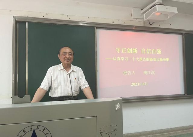 (通讯员:许怡馨)为深入学习宣传贯彻党的二十大精神,进一步提高入党积极分子思想政治素养,2023年6月8日下午,学校离退休人员党委副书记、校关心下一代工作委员会副秘书长胡江滨教授在文津303教室,以《守正创新,自信自强——认真学习党的二十大报告的新观点新论断》为题讲授了主题教育专题党课。经济学院2022级全体入党积极分子参加学习。