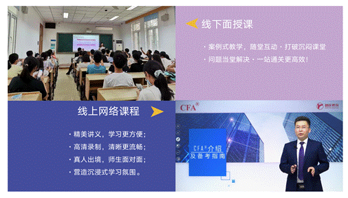 由金融领域具有丰富实务经验的CFA&FRM持证精英讲师授课,全程中英文双语教学,与国际金融实务同步的知识体系,保证高品质教学效果,使学员逐步构建全面的金融知识体系,并与专业学习相辅相成,课程包括:各科目锚点基础课程、考点串联强化、复习冲刺、押题密卷、机考模拟。