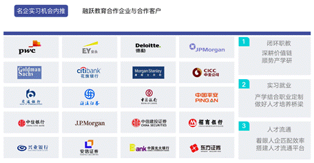 根据高端财经全才职商模型,整合行业企业人才培训案例和独家教研体系,研发出了更适合大学生、且被行业优秀企业雇主所认可的职业技能课程。优佳导师给予就业规划指导,不定期组织参加金融峰会、沙龙活动等,并提供名企实习机会,助力学员从校园到职场顺利转型。