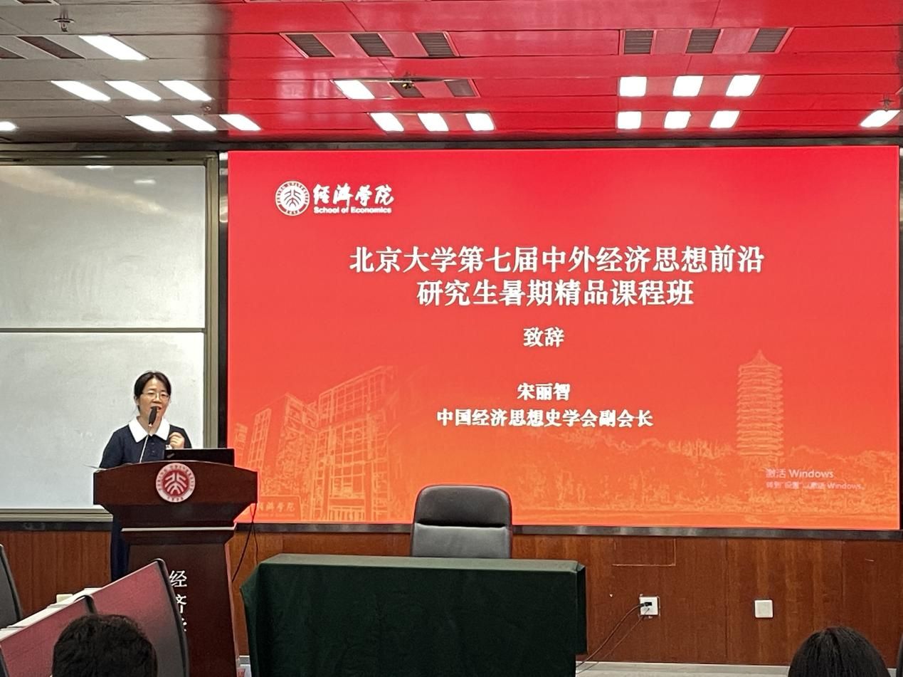 8月21日至8月24日中午,北京大学经济学院举办北京大学第七届中外经济思想史研究暑期精品课程班。我院副院长、经济史学研究中心宋丽智教授应邀致辞,经济史学研究中心叶坦教授(“文澜学者”讲座教授、北京大学经济学院讲习教授)、朱华雄教授、张连辉教授应邀做主题演讲。