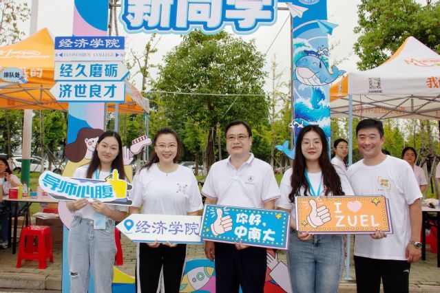 前来报到的新生及家长表示学院的迎新工作准备充分、诚意满满,纷纷来到学院迎新展架前,留下与经济学院的第一张合影。