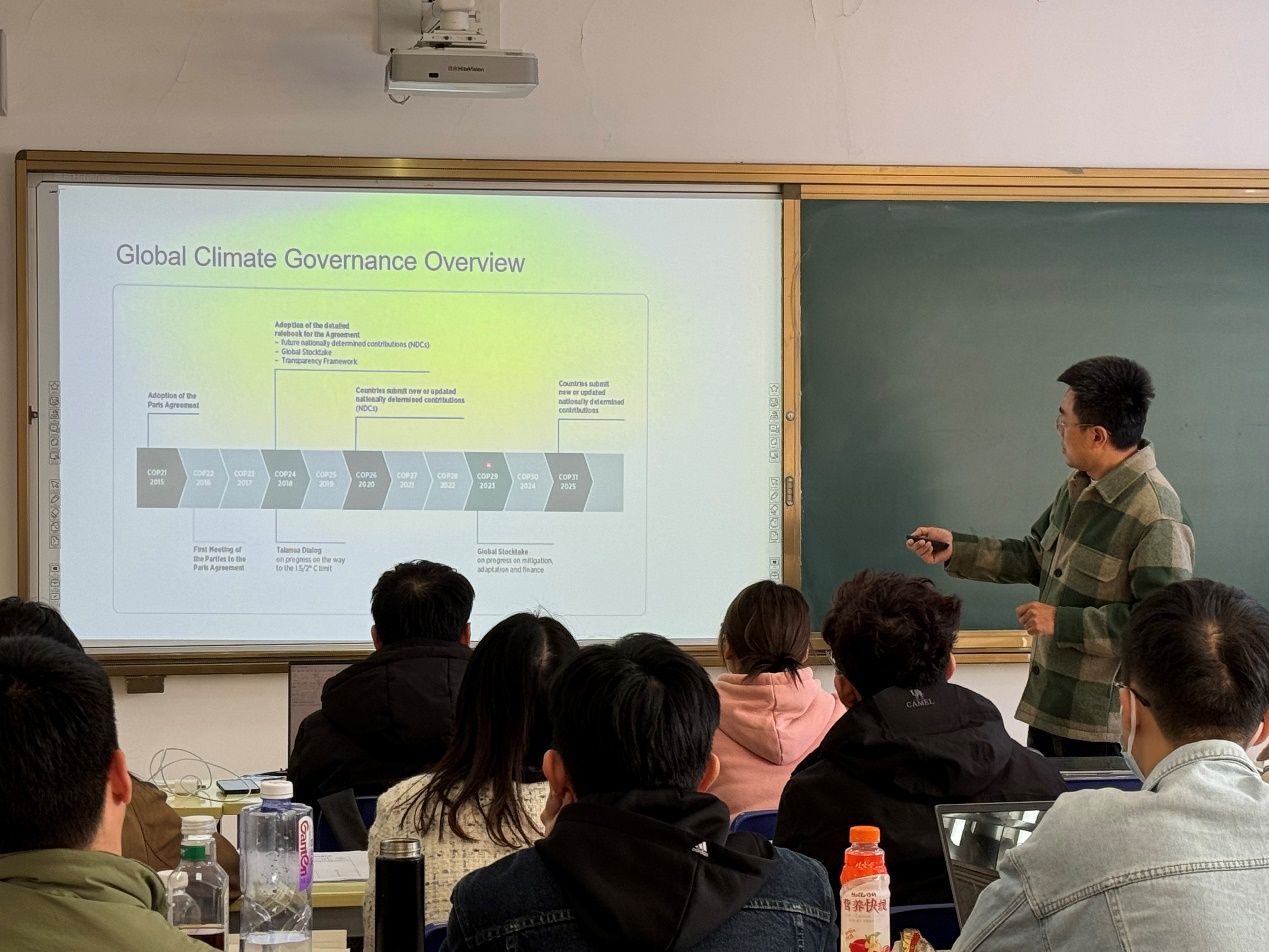 2023年11月23日上午,我院邀请了联合国气候变化框架公约(UNFCCC)的专家顾问赵嘉靖老师,进行“全球气候治理:碳市场与个人机遇”主题讲座。本次讲座由全球气候法经济学中心主任曾盈盈副教授主持,经济学院、法学院、金融学院、工商管理学院、统数学院等多名师生参与学习。