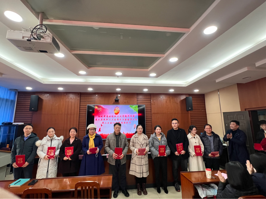 大会对2023年在科研、教学面有突出表现的教师进行了表彰。院党委书记刘刚充分肯定了本年度学院及工会的工作,向新当选的工会委员、获奖教师表示祝贺,指出在全体教职工的共同努力下,学院在学科建设、专业建设、学术研究等方面取得了优异成绩,希望全院教职工在新的一年中凝心聚力、接续奋斗,共同谱写经济学院发展的新篇章!