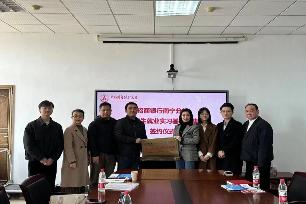 最后,双方签订大学生就业实习基地共建协议,俞凡副书记代表经济学院向招商银行南宁分行交接实习基地铜牌,校企合作签约仪式顺利举行。
