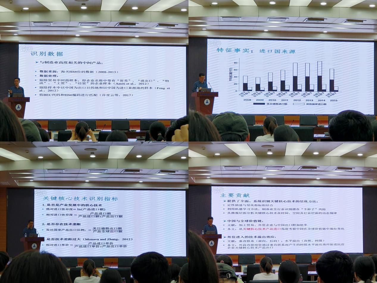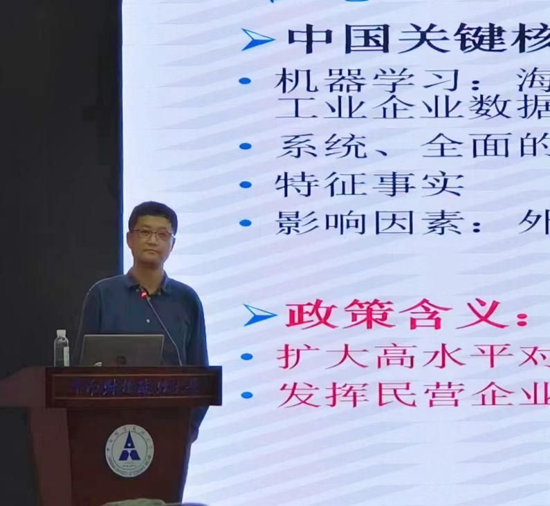 陈钊教授从研究背景入手,提出自身确定选题的考虑因素。他从诸多中央文件当中提炼出我国产业链供应链处于薄弱环节,存在关键核心技术“卡脖子”,概念界定缺乏量化方法等问题,并展开研究。研究内容部分,陈钊教授首先提出关键核心技术识别框架和量化指标,并以中国对美加征关税商品排除清单为依据,展示利用机器学习的方法,对海关进出口商品进行分类;接着进行特征描述,他指出中国关键核心技术产品复杂程度更高,外资企业在其进出口占主导地位,民营企业进口占比逐年上升而国营企业成下降趋势;最后对于FDI和关键技术的进出口进行实证分析和机制分析。此研究提供了全面、系统识别关键核心技术产品的量化方法,陈教授也提出扩大高水平对外开放,积极有效利用外资,发挥民营经济主体作用,有助于进一步保障我国的产业链安全。