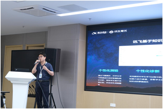 科大讯飞华中公司咨询总监朱冯睿介绍了科大讯飞在多语种语音合成、语音测评、语音识别等方面的技术发展,并表达了对经济学院人才的渴求。人事部门负责人针对学生关注的企业人才培养体系、校园秋招计划等情况展开了详细的介绍。之后的自由交流环节,学生们与科大讯飞工作人员展开了热烈的互动问答。