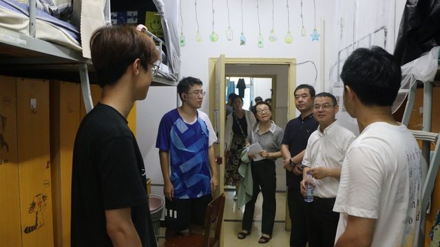 下午16:30,经济学院党委书记刘刚、副院长张鸿武及研究生工作办公室主任岳明泽、2024级研究生辅导员雷菁一同走访了南湖研究生新生宿舍,与新生进行亲切交流。刘刚一行代表学院向新生们表示热烈欢迎,仔细询问同学们的需求,对于新生反馈的宿舍问题及时记录,力求小问题当时解决,大问题实时跟进。刘刚鼓励新生们积极融入新的集体、尽快熟悉校园环境,以主人翁的姿态投入到新的学习生活中去。
