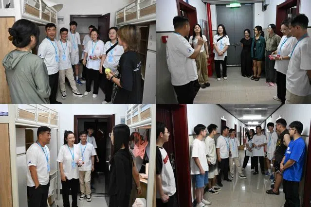 经济学院院长石智雷、党委副书记俞凡、学生工作办公室主任周琼、2024级辅导员孟庆红老师、沈鹏飞老师也走访了首义本科新生宿舍,了解宿舍环境及新生报到情况,同时与新生及家长们进行了亲切交流。在走访过程中,石智雷代表学院对新生们致以关心与慰问并与新生们交流初入大学的感触,勉励新生们努力学习,同时祝愿他们能够在本科四年中收获满满、更上一层楼。