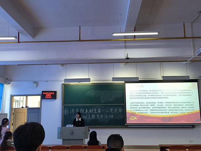 (通讯员 田鹏程 摄影 佟汭昕)为深入学习贯彻习近平总书记在庆祝新中国成立75周年招待会等会议上的重要讲话和重要指示精神,进一步推动党建和业务工作深度融合。10月24日下午,经济学院本科生第一、第二党支部在南附楼203室联合开展了十月主题党日活动。本次活动由第二党支部组织委员樊羽嘉同志主持,经济学院本科生第一、第二党支部全体党员参加此次活动。