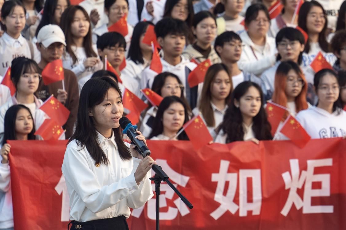 青春使命展豪情。经济学院本科生学生代表高枫博在国旗下进行了题为“信念铸魂,青年执笔”的演讲。他回望了中国人民追求国家独立、人民解放的奋斗征程,并表示同学们要积极响应习近平总书记的号召,坚守信念,勇担青春使命,绽放青春之花,为实现中华民族伟大复兴的中国梦努力奋斗。