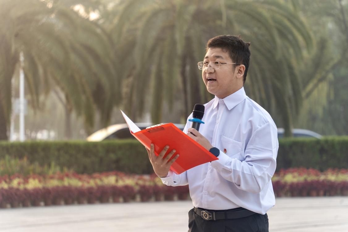 (图4:本科生学生代表高枫博做国旗下的演讲)