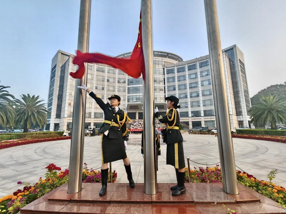 (学生记者 胡漪 摄影 何胤良)七十五载颂盛世,砥砺前行续华章。为加强青年学子的理想信念教育,引领广大青年树立崇高理想,2024年11月11日上午7时,经济学院“信念如炬照征途,国旗飘扬映风华”升旗仪式于南湖校区中原楼前隆重举行。校学生工作部副部长范献龙、经济学院院长石智雷、副院长宋丽智、党委副书记俞凡、学院学生工作办公室的老师们及2023级全体本科生到场参加本次升旗仪式。仪式由2023级本科生高文杰主持。