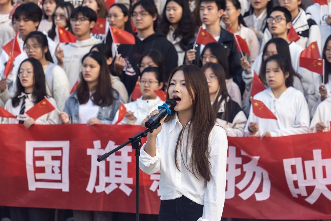 信念扬帆赴前程。全体师生齐声合唱《我爱你中国》。“我爱你中国 亲爱的母亲 我为你流泪 也为你自豪”的旋律响彻云霄,师生们用真挚的歌声向祖国母亲倾诉着最热烈的爱意,彰显了中南大人矢志不渝的爱国信念。