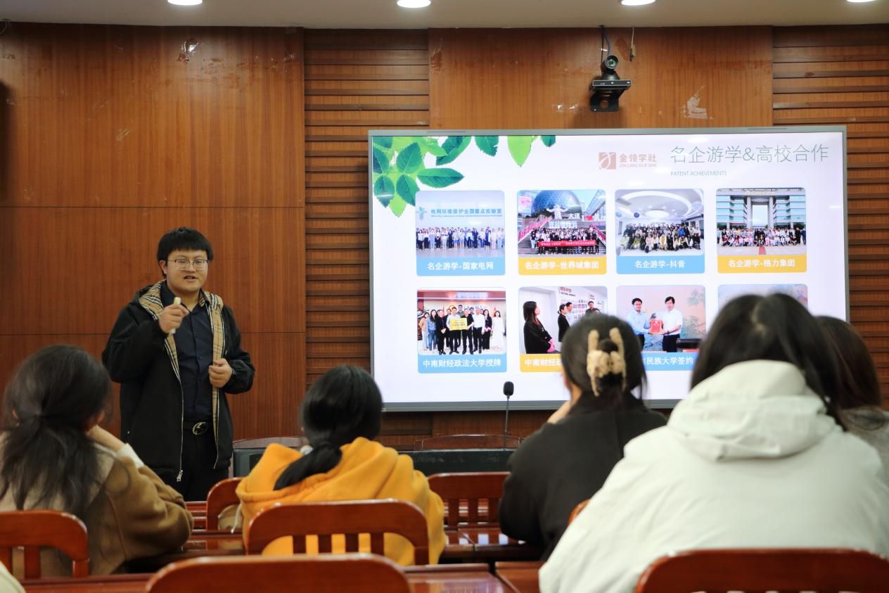 (学生记者 贾一鸣 摄影 刘路洋)在追求梦想的道路上,每个人都可以成为自己命运的舵手。为加强同学们对职场的认识,深入了解职业选择,更好地规划未来,“经院之声”校友回访活动于12月5日下午在南湖校区文泉楼南206教室隆重举行。讲座特邀经济学院校友、武汉市福州商会团委副书记、武汉同创教育科技有限公司CEO、中南民族大学企业导师杨浩然分享经验。经济学院本科生代表到场参加讲座,讲座由信息工程学院学生李芳痕主持。