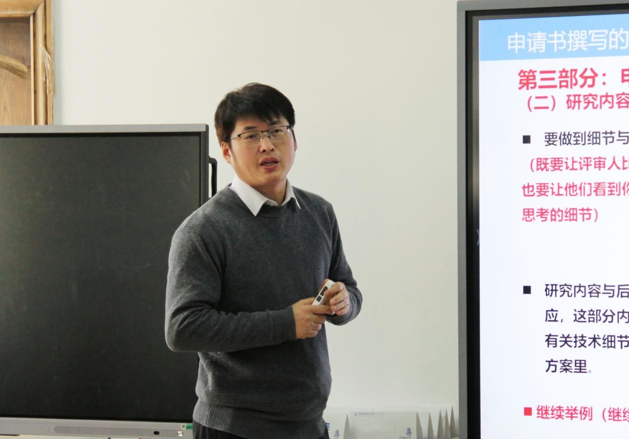 在选题方面,卢教授指出,要注意将自身研究方向与国家政策相结合,尤其要具有前沿性。在申报书的结构方面,卢教授强调申报书要有完整的框架结构,注重各部分之间的内部逻辑关系。