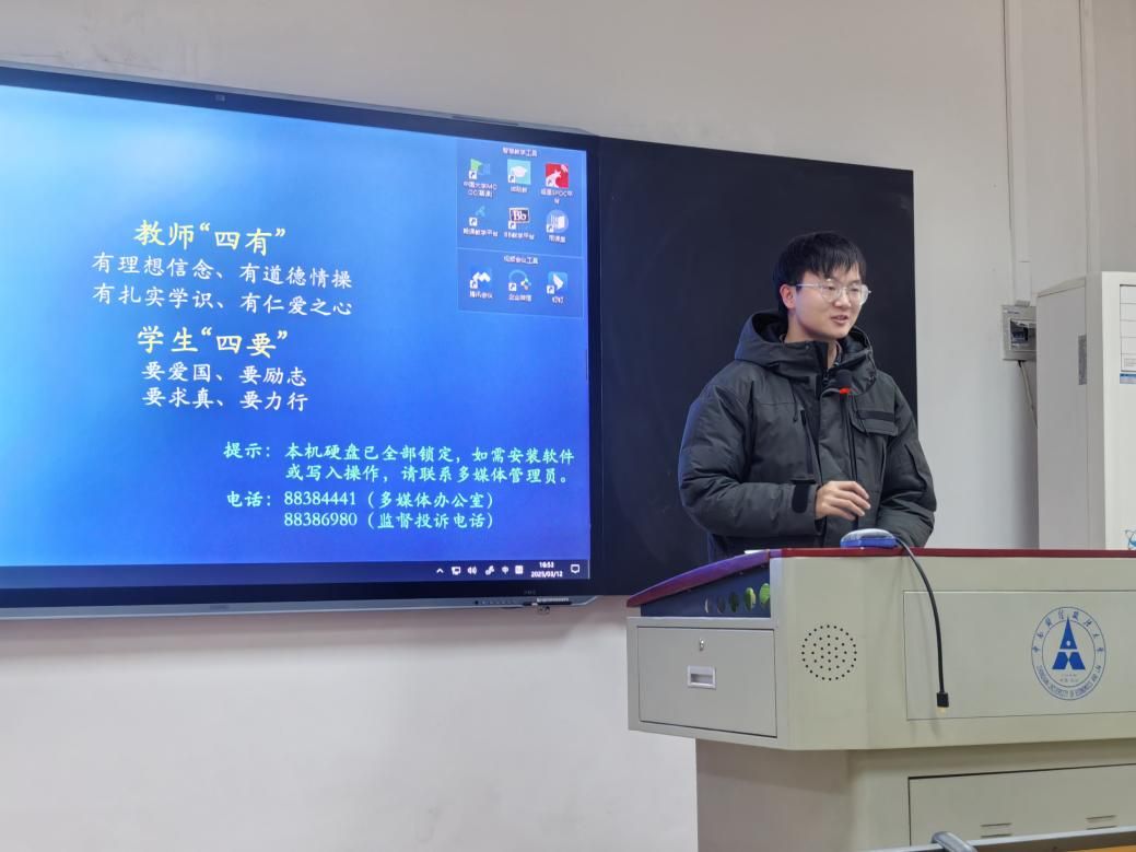 班级导师结合亲身经历与政策文件,向同学们强调了学业成绩在本科阶段的重要性,鼓励同学们持续学习,以开放包容的心态主动加强与同学、师兄师姐、老师的交流,将专业知识与社会实践紧密结合,为强国建设凝聚更多智慧与力量。