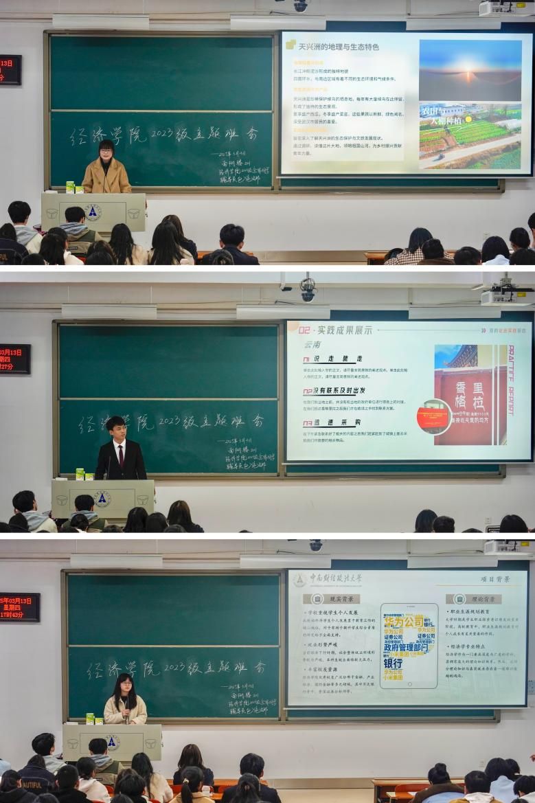 (学生通讯员 高枫博 摄影 陈思婕)新岁启封,万象更新。为深入贯彻落实党的二十大精神,锚定"强国建设,青年何为"时代命题,引导青年学子在思想淬炼中校准人生坐标,在实践磨砺中厚植家国情怀,2025年3月13日,经济学院于南附201召开2023级本科生新学期年级大会暨寒假社会实践分享会,会议由辅导员包伦娜老师主持,全体学生通过"生活筑基-学业强基-规划明志-实践励志"四维路径,共同探讨新时代青年的使命担当。