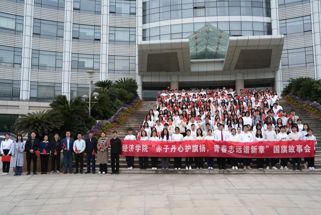 (图1:领导老师、经济学院本科生第一、第二、第三党支部参加升旗仪式)