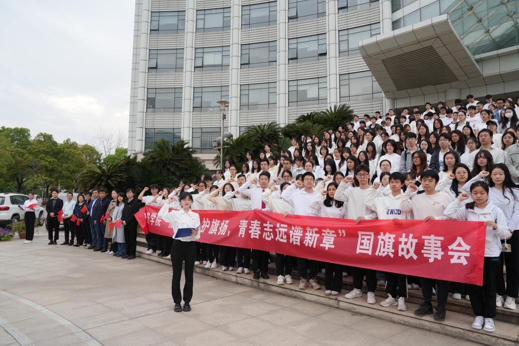 经济学院学生党员代表杞欣蓓在国旗下进行了以《一抹丹心卫旗志,青春有我谱华章》为题的演讲。从复原湘江战役3D场景时老兵的动情回忆,到贵州黔东南山区孩子们对生活的向往,她深情说道:“护旗手托起的不只是布帛的重量,更是让滚烫的血脉穿越时空,在我们的脉搏中奔涌不息。”她呼吁青年将“小我”融入“大我”,用代码搭建数字中国、用科技突破“卡脖子”难关,以热忱助力乡村振兴,在强国征程中书写无悔青春。