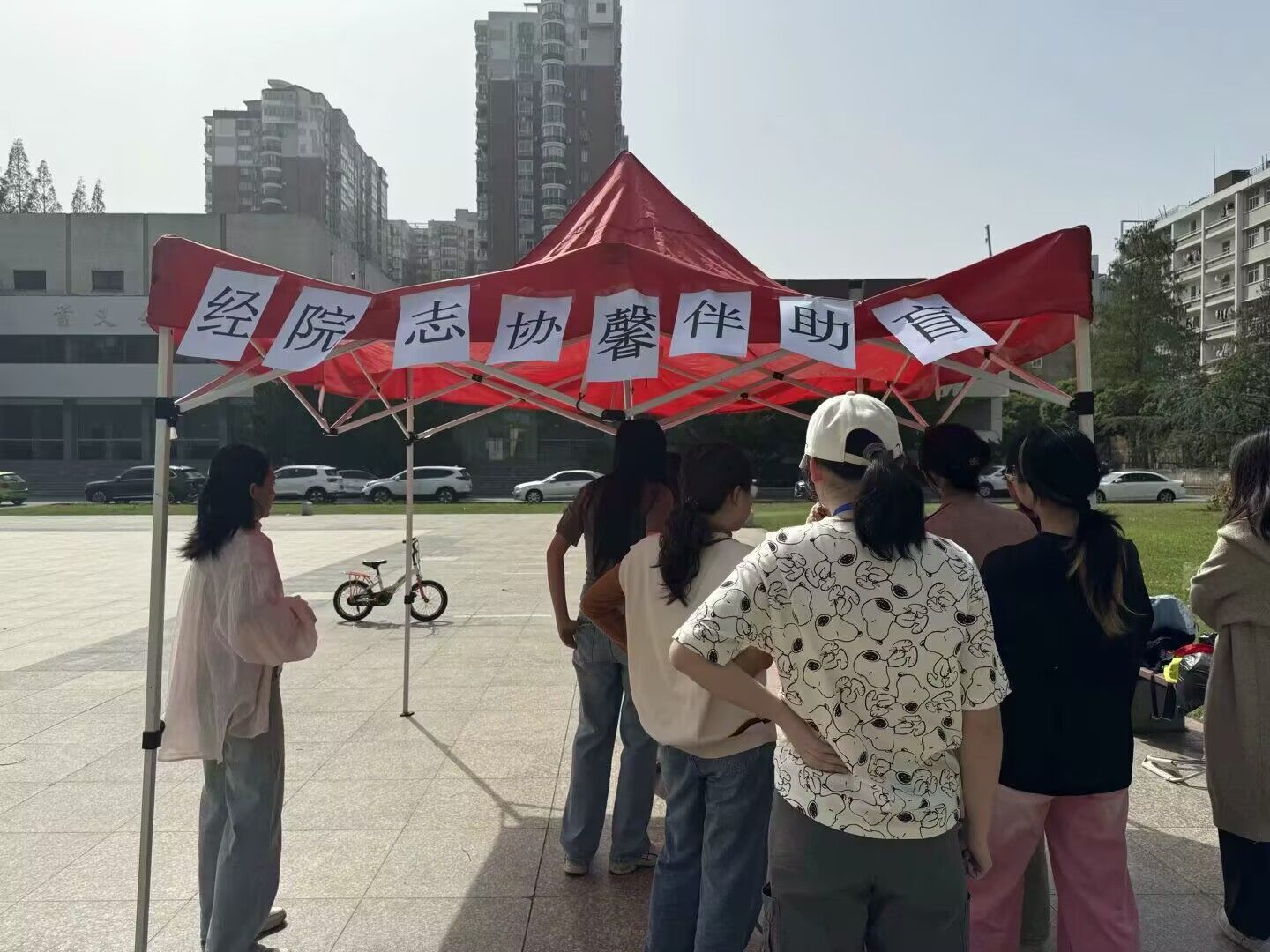活动当天,首义广场上热闹非凡。志愿者们身着红马甲,佩戴工牌,精神饱满地迎接参与者。活动首先进行的是蒙眼挑战环节,同学们踊跃报名,蒙上双眼,在模拟盲道的路线上体验盲人出行。在这一过程中,大家切实感受到了盲人出行的不易,对盲道的重要性有了更深刻的认识。有的同学在蒙眼行走时,因不熟悉路线而小心翼翼,深刻体会到盲人在黑暗中摸索前行的艰难。