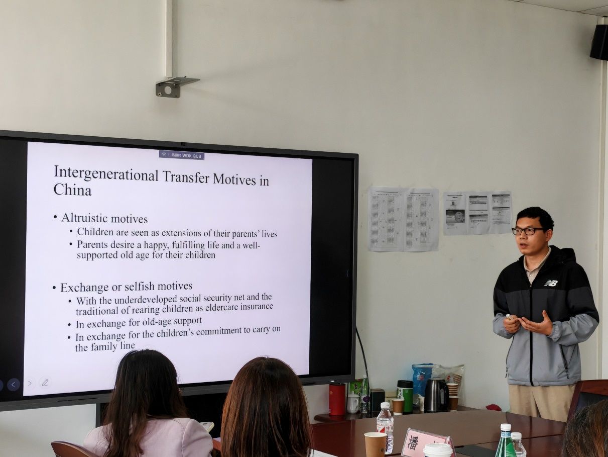 在第3期讲座中,胡德状博士以“Selfish or Altruistic Motive? Children’s Marriage and Parental Labor Supply in China”为题,展开了一场极具现实意义的学术分享。胡德状博士基于个体层面面板数据研究发现,家中育有未婚成年子女的父母更倾向于持续就业或重返劳动力市场,其动因主要源于对子女的经济支持需求。这一现象更符合“利他主义”动机,即父母出于对子女福祉的关注主动提供支持,而非“交换动机”期待未来获得子女反馈。胡德状博士强调该效应在母亲群体中更为显著,这揭示了子女婚姻状态对父母劳动供给影响存在性别差异特征。在交流环节,刘玲、Viola Angelini等老师围绕中国家庭代际支持以及男女家庭分工的文化特质等议题展开讨论,为该研究注入了更丰富的文化视角与社会思考。