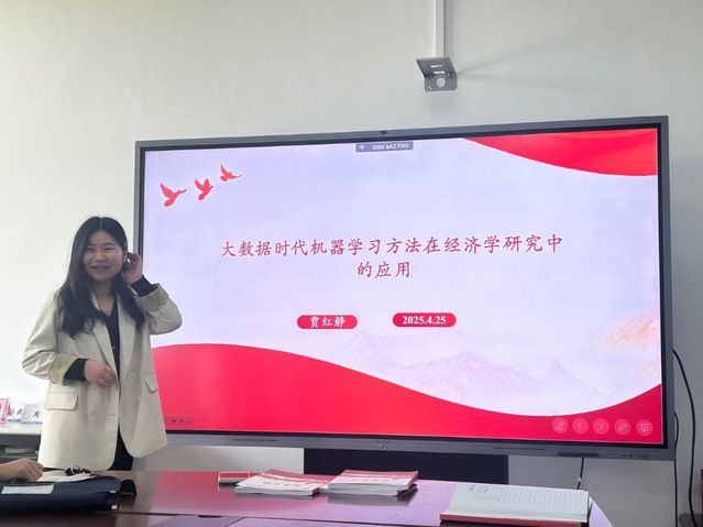 2025年政府工作报告提出,要持续推进“人工智能+”行动。为深入贯彻党的最新理论成果,进一步提升教师的科研能力与跨学科素养,推动数字经济领域的研究创新,数字经济党支部于2025年4月25日下午在文泉楼南207室举办了以“大数据时代机器学习方法在经济学研究中的应用”为主题的专题分享会。本次活动由贾红静博士担任主讲人,支部全体党员教师积极参与。