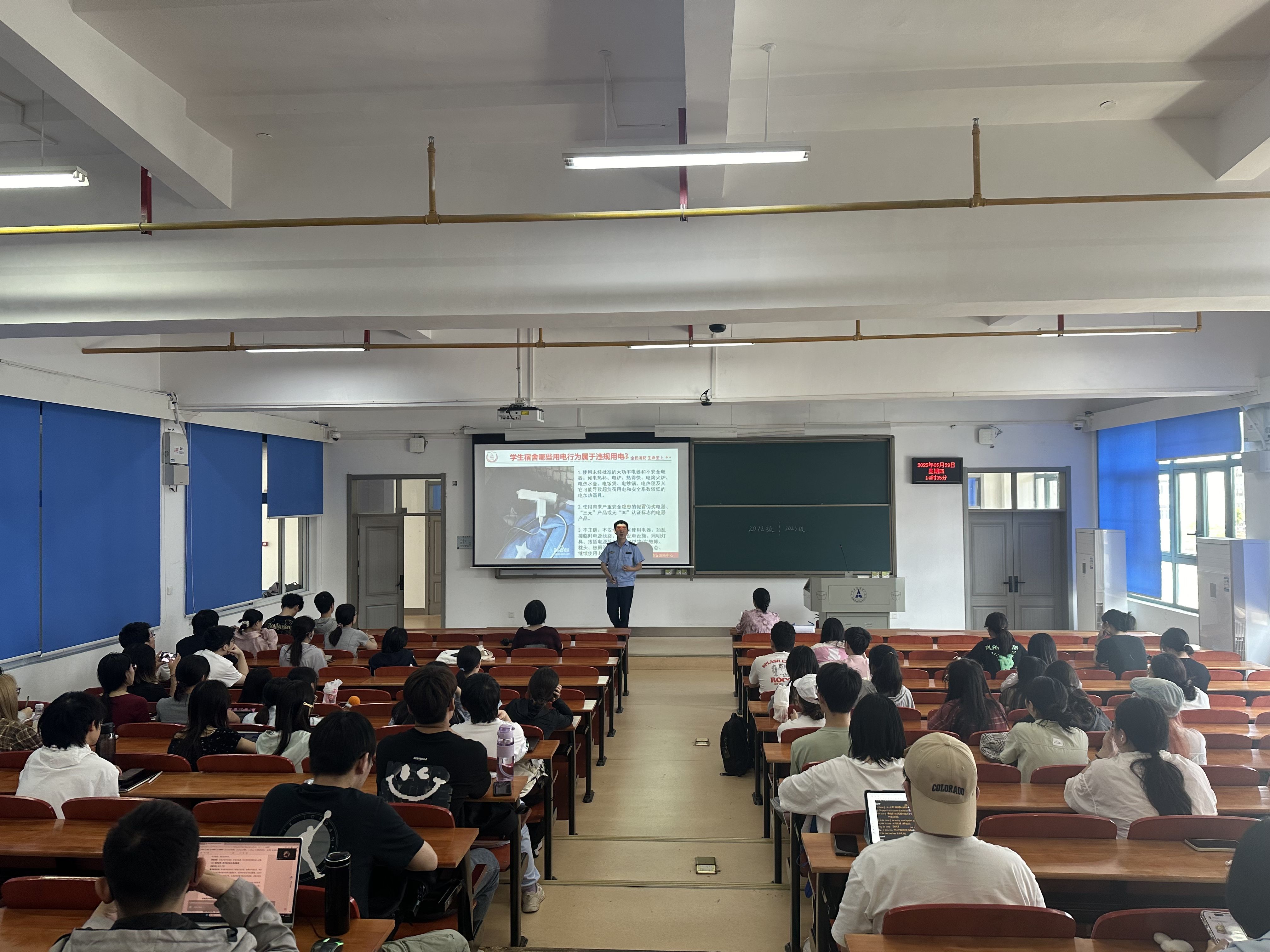 (通讯员 高枫博 摄影 陈思捷 王欣媛)为全面提升学生消防安全意识与应急自救能力,筑牢校园安全屏障,5月29日下午,经济学院分别在南湖校区南附204教室、首义校区文润303教室开展消防安全知识培训。此次培训覆盖不同年级学生,其中南湖校区面向2021、2022、2023年级学生代表,首义校区面向2024级全体学生,实现消防安全教育精准覆盖。